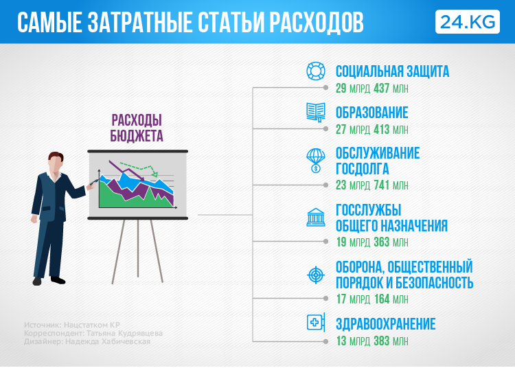 Бюджет Кыргызстана традиционно социально ориентированный. Это означает, что большая часть расходов идет на образование, социальную защиту и здравоохранение.