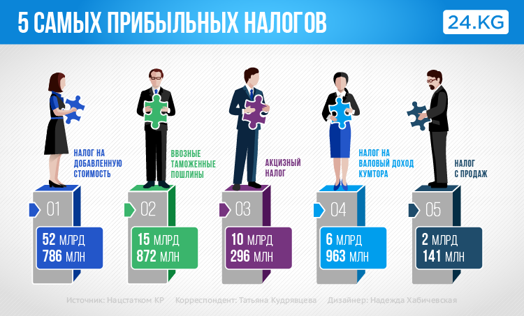 Самые большие поступления пришлись на налоговые доходы. Они принесли бюджету 107 миллиардов 736,9 миллиона сомов. В том числе Налоговая служба собрала 62 миллиарда 65 миллионов сомов, таможня — 41 миллиард 671,8 миллиона сомов.