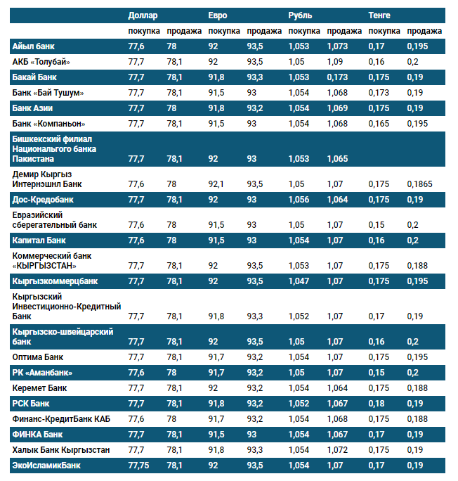 Курс доллара в коммерческих банках Кыргызстана на 18 августа