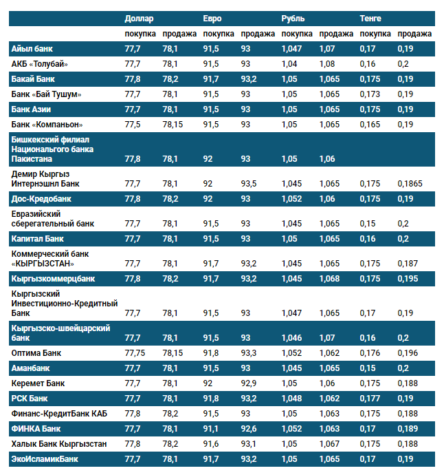 Курс доллара в коммерческих банках Кыргызстана на 21 августа