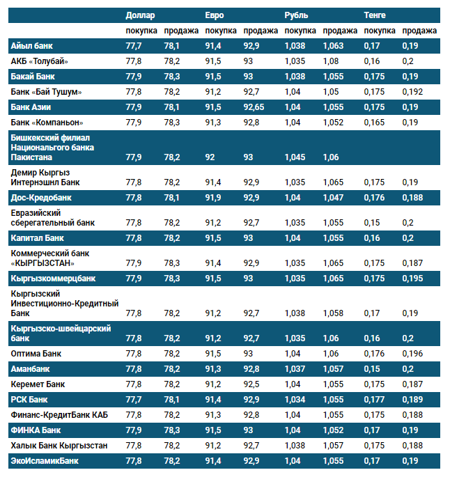Курс доллара в коммерческих банках Кыргызстана на 24 августа