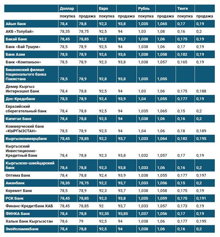 Курс доллара в коммерческих банках Кыргызстана на 3 сентября