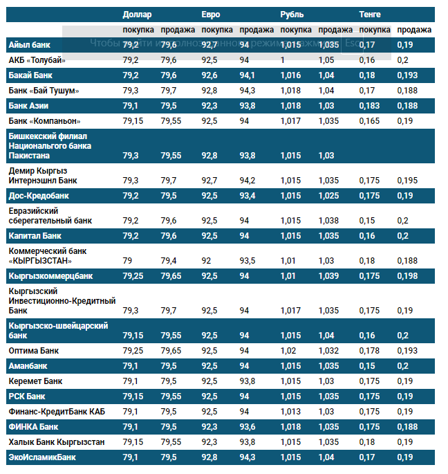 Курс доллара в коммерческих банках Кыргызстана на 1 октября