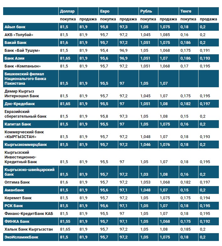 Курс доллара в коммерческих банках Кыргызстана на 28 октября