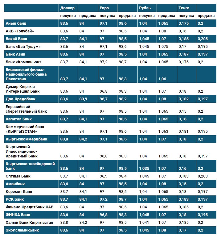 Курс доллара в коммерческих банках Кыргызстана на 4 ноября