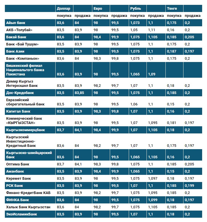 Курс доллара в коммерческих банках Кыргызстана на 6 ноября