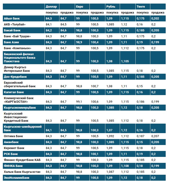 Курс доллара в коммерческих банках Кыргызстана на 12 ноября