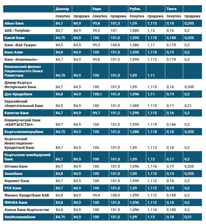 Курс доллара в коммерческих банках Кыргызстана на 16 ноября