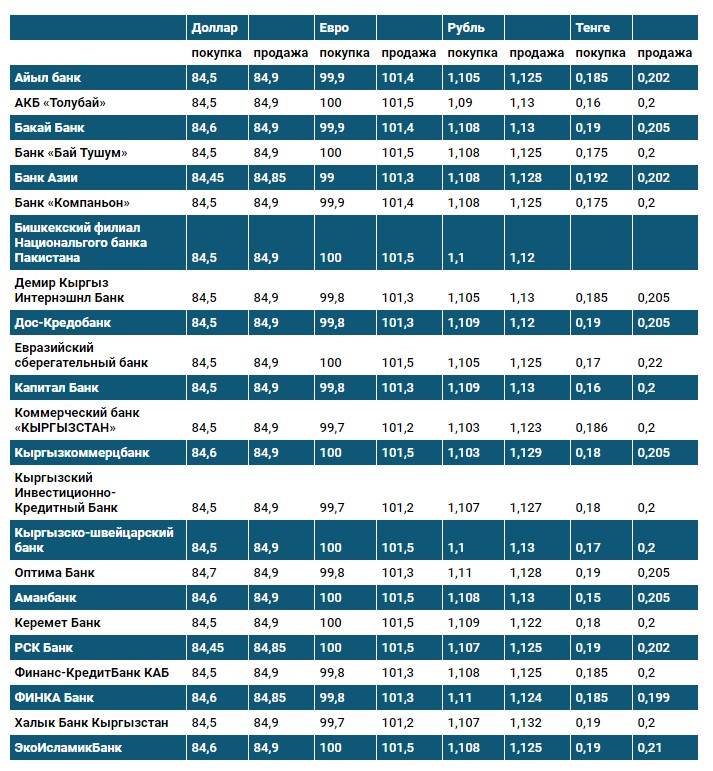 Курс доллара в коммерческих банках Кыргызстана на 19 ноября