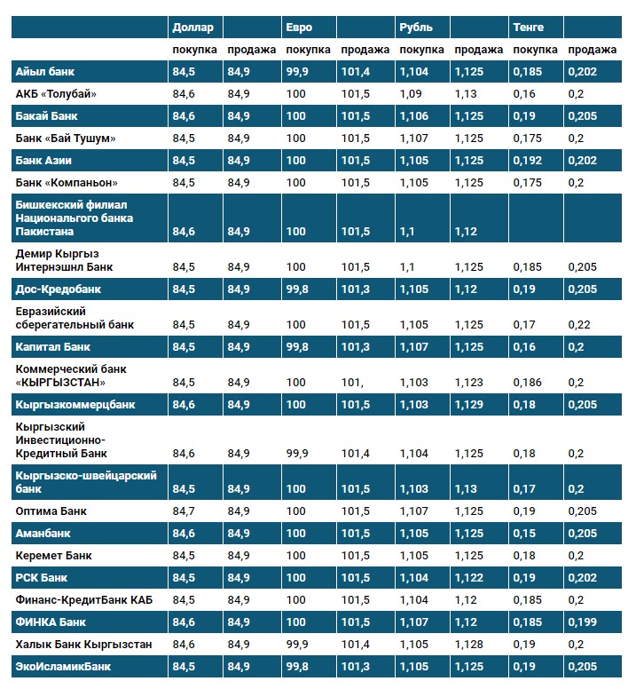 Курс доллара в коммерческих банках Кыргызстана на 20 ноября