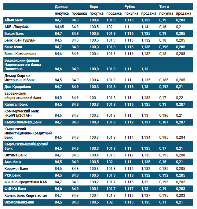 Курс доллара в коммерческих банках Кыргызстана на 26 ноября