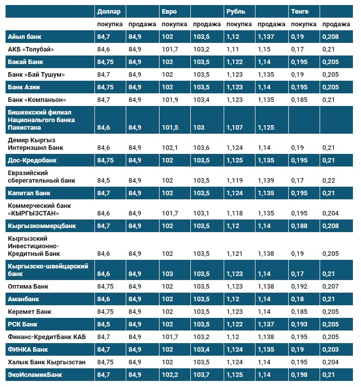 Курс доллара в коммерческих банках Кыргызстана на 3 декабря