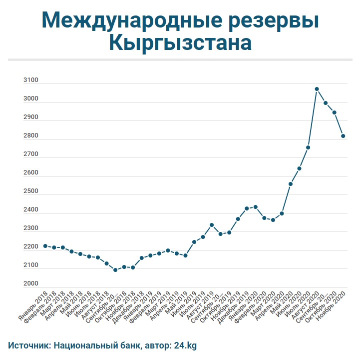 По итогам ноября резервы достигли $2 миллиардов 817,16 миллиона. За месяц они уменьшились на $127,04 миллиона. За сентябрь — ноябрь показатель снизился до $254,02 миллиона.