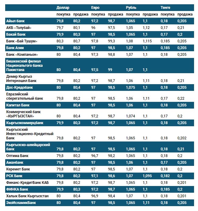 Курс доллара в коммерческих банках Кыргызстана на 21 декабря