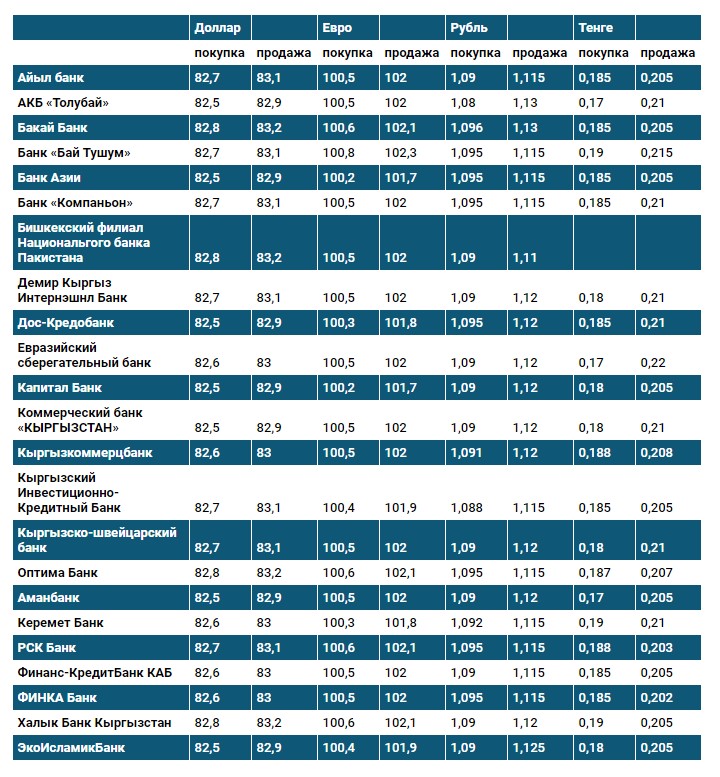 Курс доллара в коммерческих банках Кыргызстана на 24 декабря