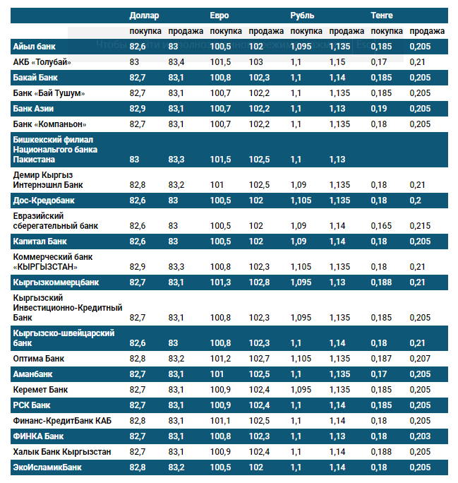 Курс доллара в коммерческих банках Кыргызстана на 5 января