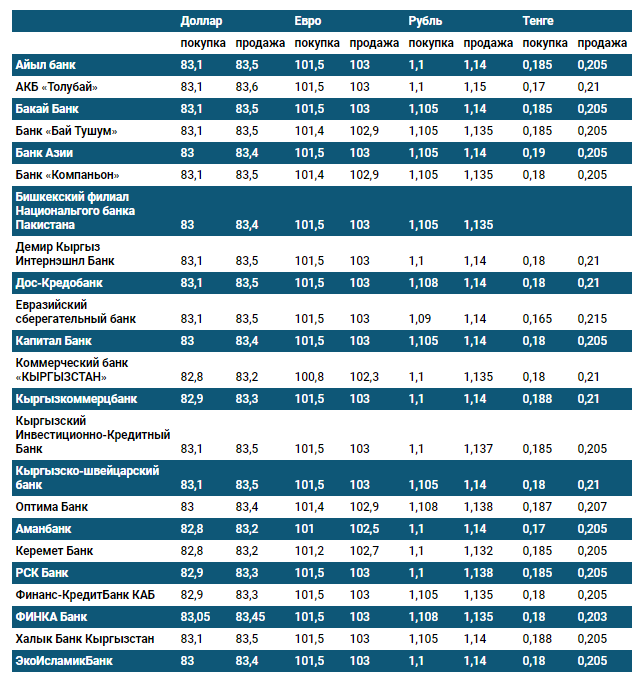 Курс доллара в коммерческих банках Кыргызстана на 6 января