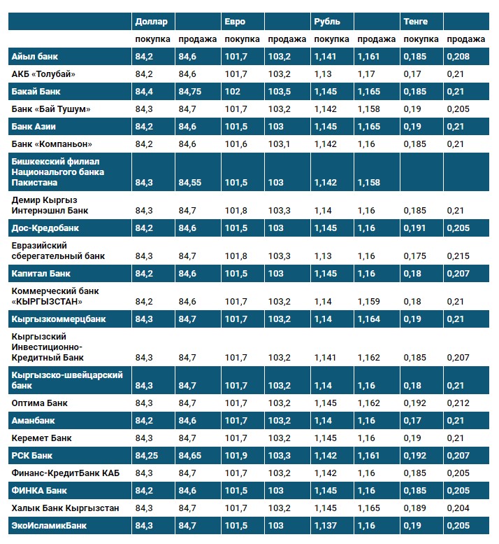 Курс доллара в коммерческих банках Кыргызстана на 21 января