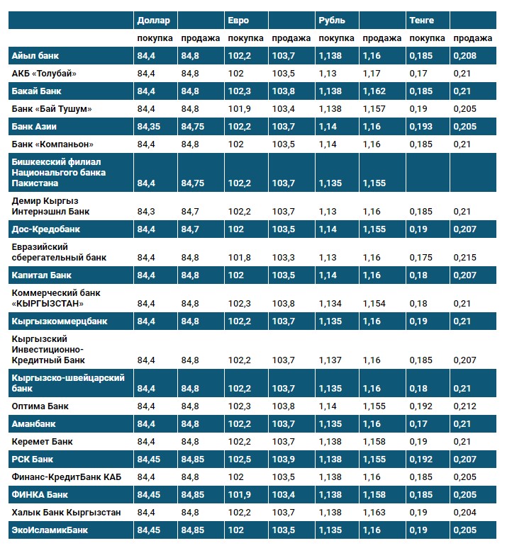 Курс доллара в коммерческих банках Кыргызстана на 22 января