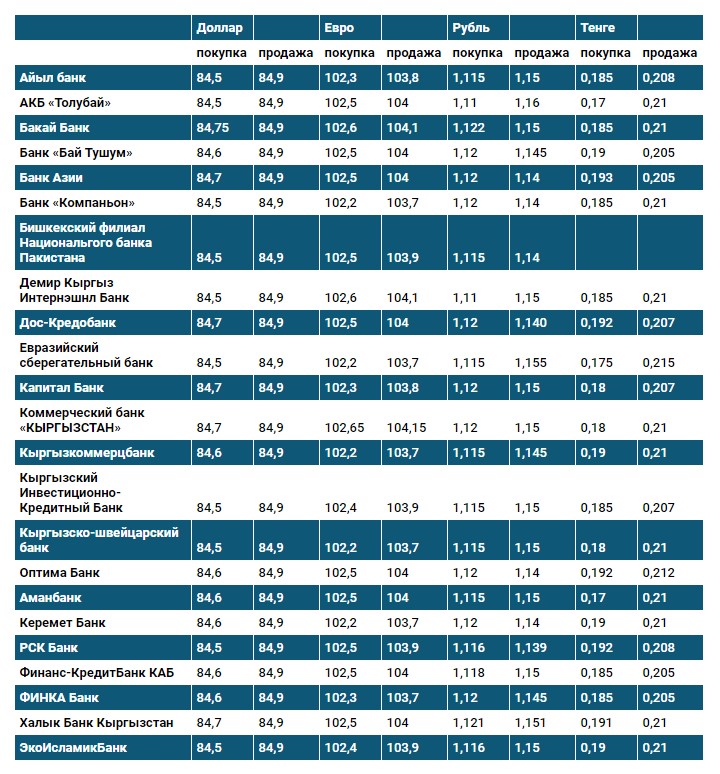 Курс доллара в коммерческих банках Кыргызстана на 25 января