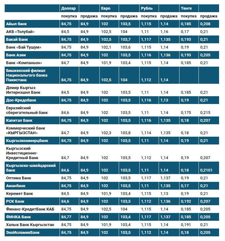 Курс доллара в коммерческих банках Кыргызстана на 28 января