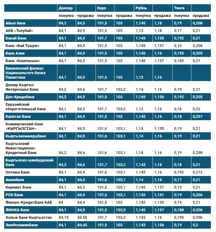 Курс доллара в коммерческих банках Кыргызстана на 16 февраля
