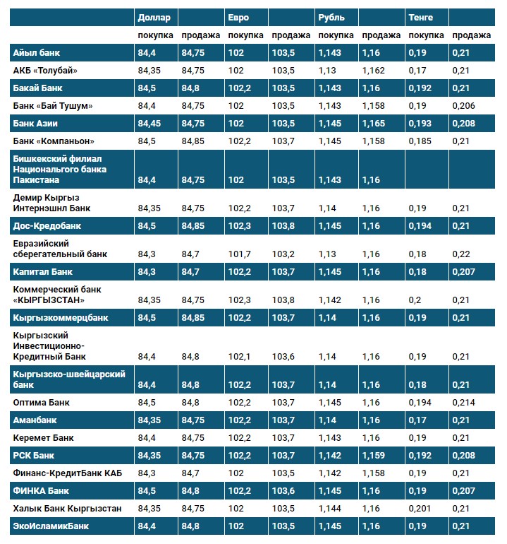 Курс доллара в коммерческих банках Кыргызстана на 25 февраля