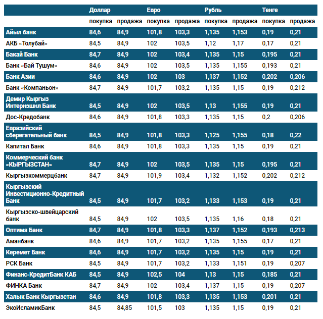 Курс доллара в коммерческих банках Кыргызстана на 1 марта