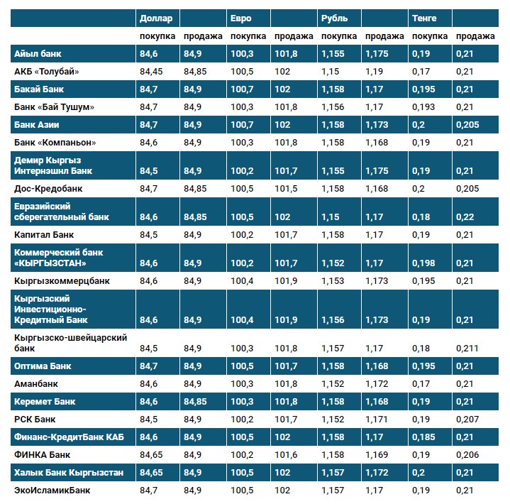 Курс доллара в коммерческих банках Кыргызстана на 17 марта