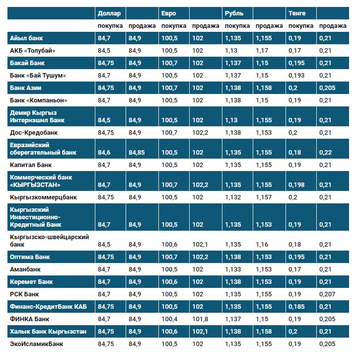 Курс доллара в коммерческих банках Кыргызстана на 19 марта