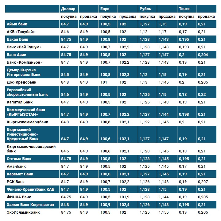 Курс доллара в коммерческих банках Кыргызстана на 23 марта