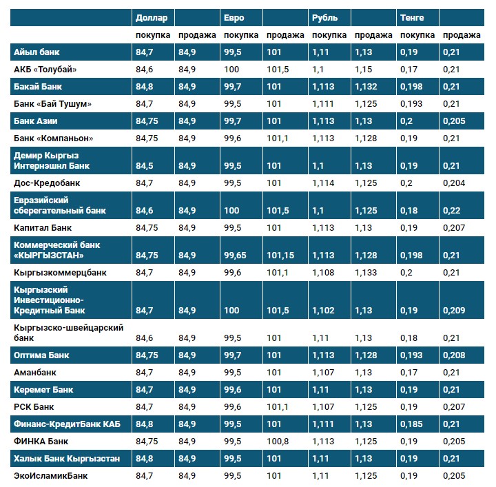 Курс доллара в коммерческих банках Кыргызстана на 26 марта