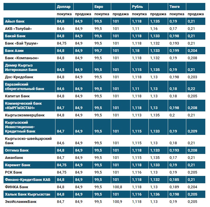 Курс доллара в коммерческих банках Кыргызстана на 30 марта