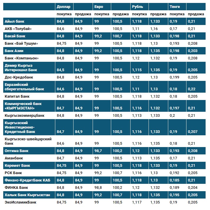 Курс доллара в коммерческих банках Кыргызстана на 1 апреля