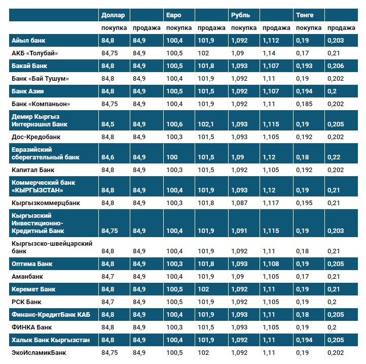 Курс доллара в коммерческих банках Кыргызстана на 12 апреля