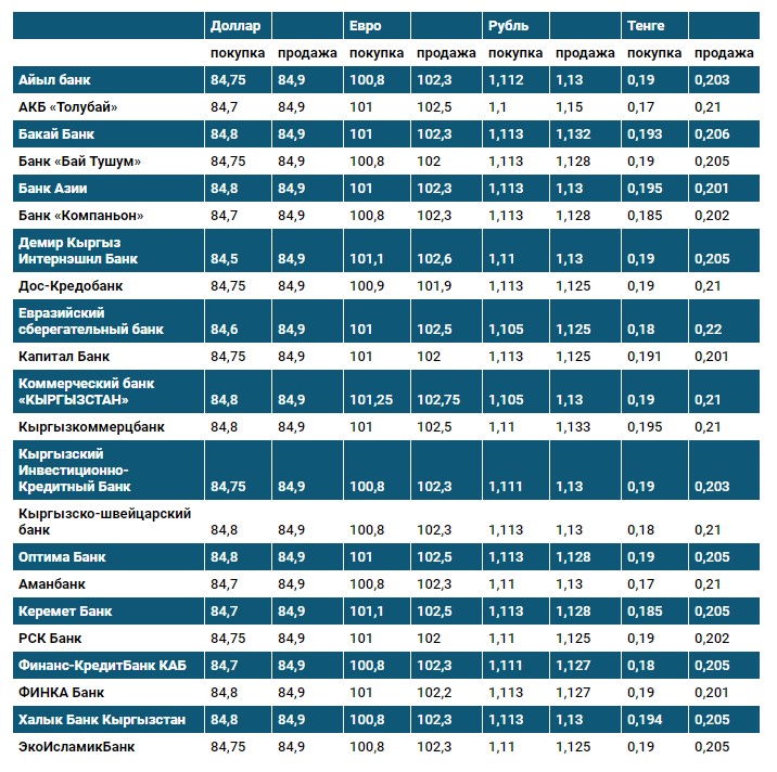 Курс доллара в коммерческих банках Кыргызстана на 19 апреля