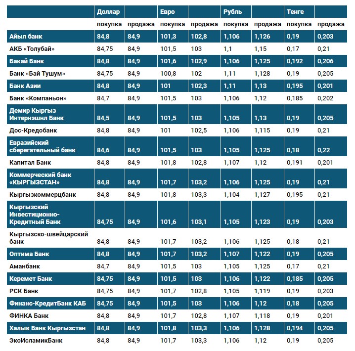 Курс доллара в коммерческих банках Кыргызстана на 20 апреля