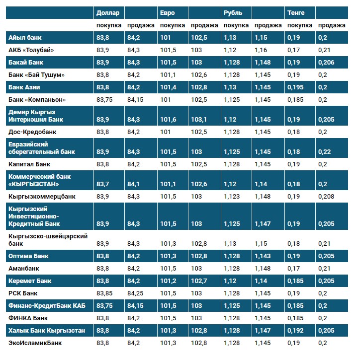 Курс доллара в коммерческих банках Кыргызстана на 18 мая
