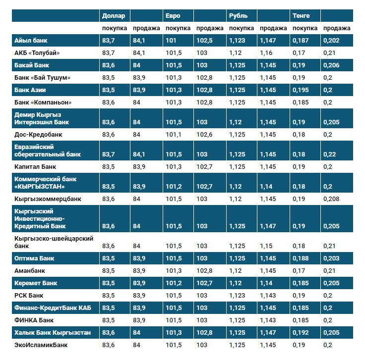 Курс доллара в коммерческих банках Кыргызстана на 19 мая