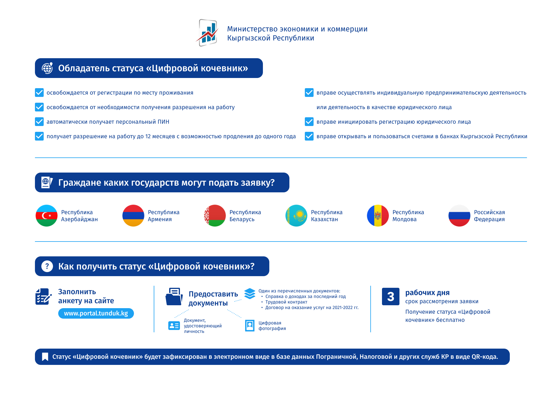 Статус Digital nomad предоставляет режим наибольшего благоприятствования для специалистов, релоцирующихся в Кыргызстан.