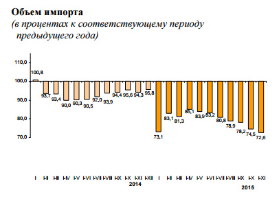 Однако и в сфере торговли есть подводные камни. Например, данные по внешнеэкономической деятельности в минувшем году вызывают, скорее, сожаление. За 11 месяцев объем внешней торговли сократился на 23,7 процента. Экспорт упал на 10,7 процента, а импорт – на 27,4 процента. Экспорт без учета золота и вовсе снизился на 21 процент - за счет уменьшения поставок товаров в страны СНГ.