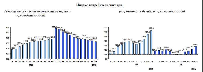 Самое интересное, что галопирующий доллар существенно не повлиял на цены в стране. А в конце 2014 года инфляция была более существенной – 10,5 процента. В Нацстаткоме объясняют, что в 2015-м больше всего подорожали алкоголь и сигареты (на 12,4 процента) и непродовольственные товары (на 12,3 процента). Выросли и тарифы (на 6,7 процента), а вот продукты, наоборот, подешевели в среднем на 4,2 процента.