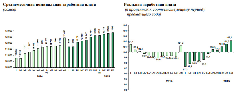 Есть в отечественной экономике показатели, которые растут или уменьшаются весьма скромно. Это уровень зарплаты и безработицы. В 2015 году среднемесячная номинальная зарплата кыргызстанцев увеличилась на девять процентов – до 12 тысяч 848 сомов. А вот число безработных сократилось на 3,8 процента. Сейчас в стране их зарегистрировано 56 тысяч.