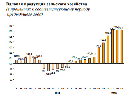При этом за год структура ВВП, несмотря на заявления правительства о смене ориентиров, так и не изменилась. По-прежнему наибольшая доля (более 50 процентов) приходится на сферу услуг. В 2015 году экономический рост и вовсе достигнут за счет отраслей товарного производства (рост 3,2 процента) и услуг (рост 3,7 процента). Показатели развития в остальных областях экономики по итогам года более чем скромные.
