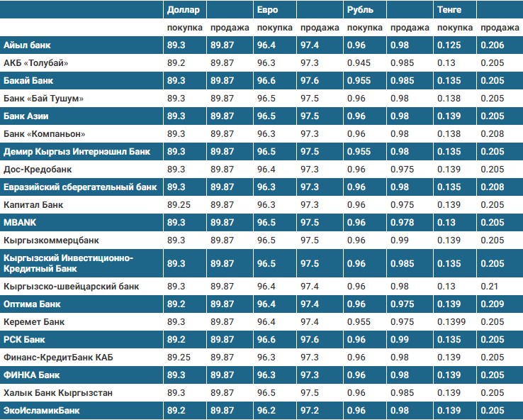 Курс доллара в коммерческих банках Кыргызстана на 8 апреля
