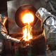 «После приемки с представителями месторождения взвешивается каждый слиток доре. Потом переходим в следующую комнату, где плавим весь этот состав в двух индукционных печах. Там и берется проба в специальные колбы. Всего берется четыре пробы: одна колба идет поставщику, одна — в лабораторию, и две колбы остаются у нас. Все это опять-таки в присутствии представителей месторождения. Далее расплавленный состав разливается в специальные формы слитков», — сказал начальник цеха.