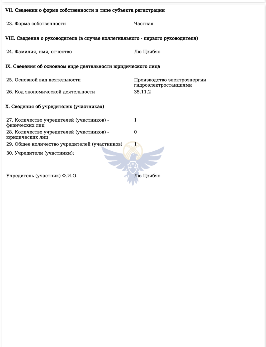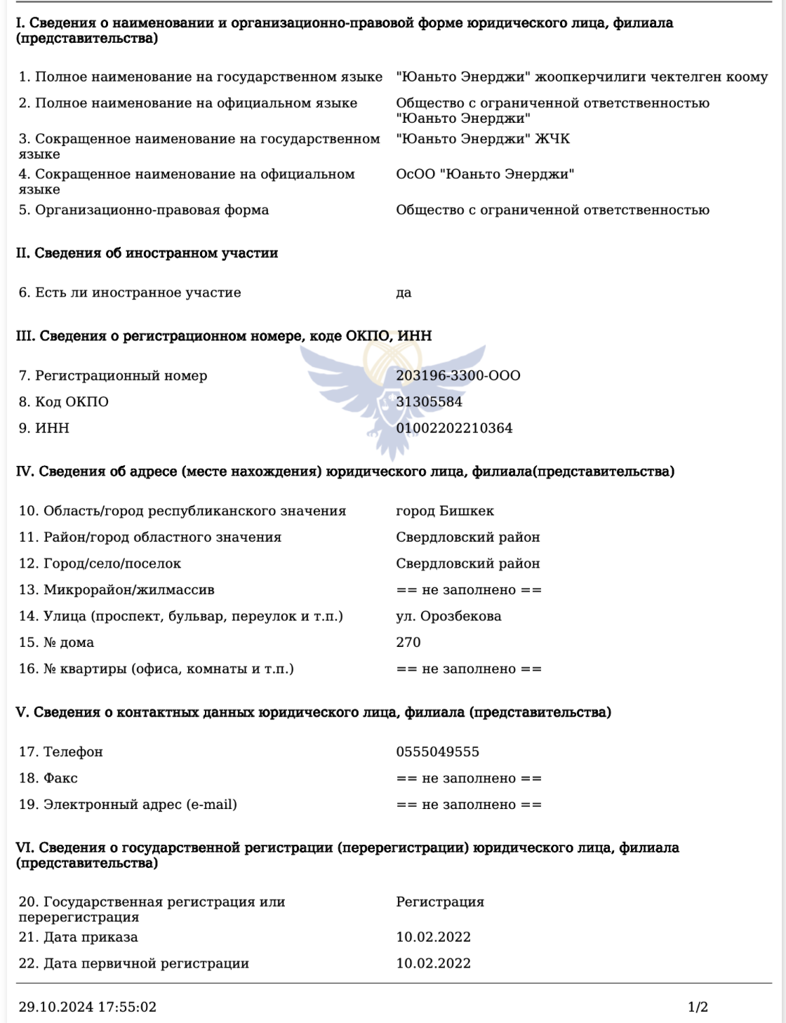 Лю Цзибяо также числится учредителем и директором другой компании – ОсОО «Юаньто Энерджи».