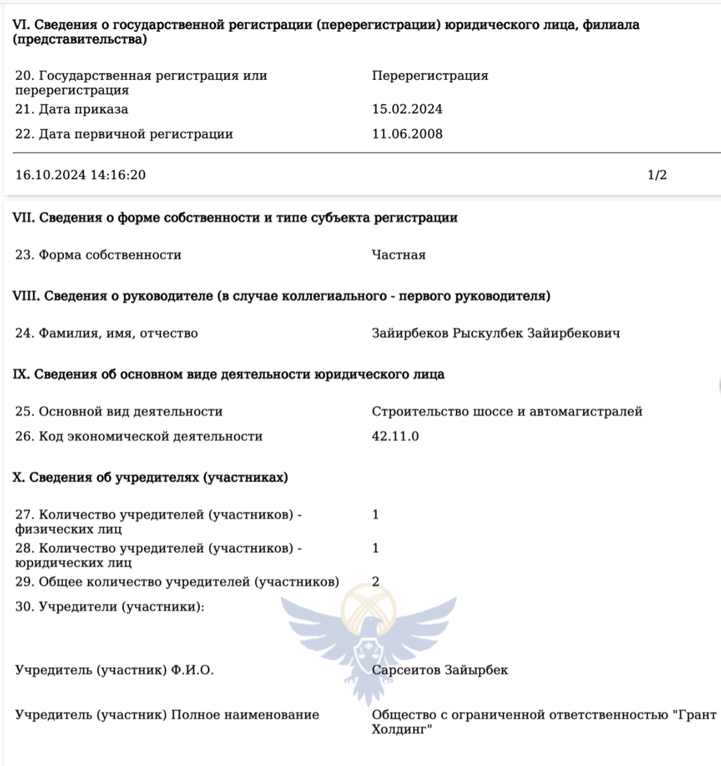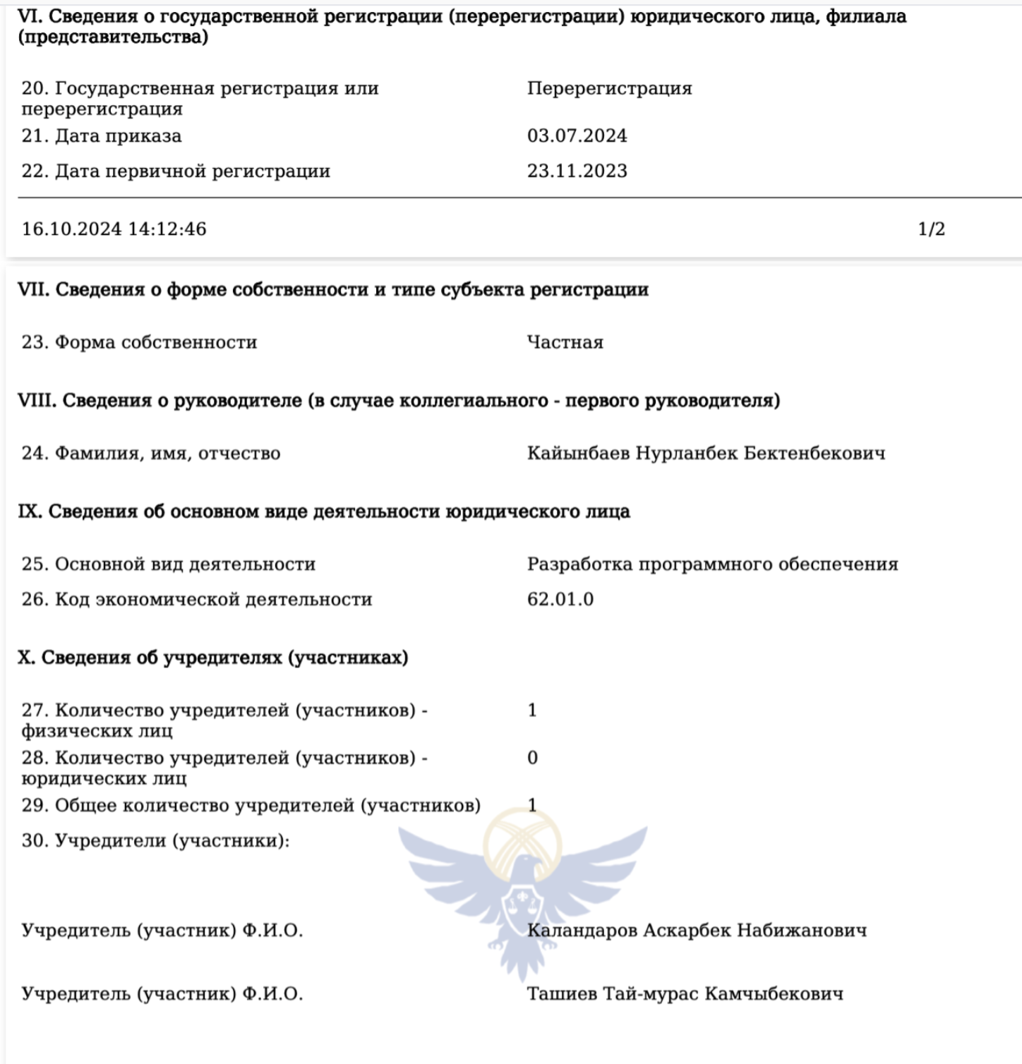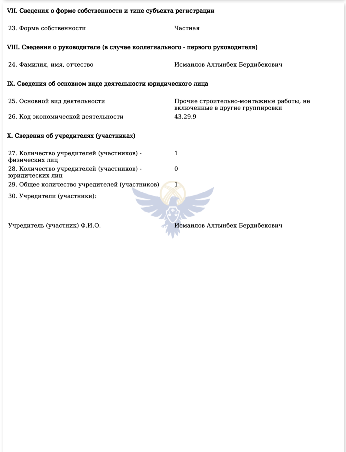 По данным Минюста, руководитель и учредитель компании Алтынбек Исмаилов. В ноябре 2022 года баллотировался в депутаты Жогорку Кенеша.