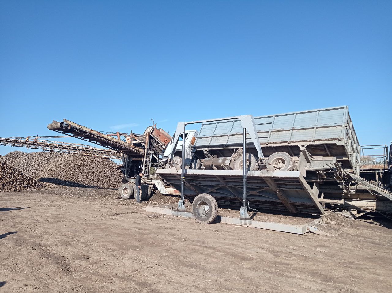 Пункт приема — это огромная территория. Судя по инфраструктуре, он работает уже несколько десятков лет. Здесь взвешивают, отбирают пробы (чтобы определить сахаристость) и складируют под открытым небом. Свеклы очень много. В нескольких метрах от гор корнеплода длинная вереница груженых КамАЗов и ЗИЛов. Ждут, строго соблюдая очередь, без лишней суеты и толкоткни.