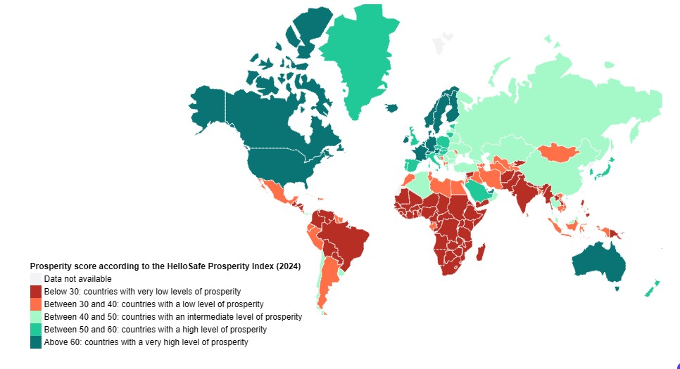 Аналитико-финансовая платформа HelloSafe (Канада) представила Индекс мирового процветания за 2024 год. Кыргызстан вошел в число стран с очень низким уровнем благосостояния, заняв 114-е место из 186 и набрав лишь 29,36 балла. Это худший результат среди стран Центральной Азии.